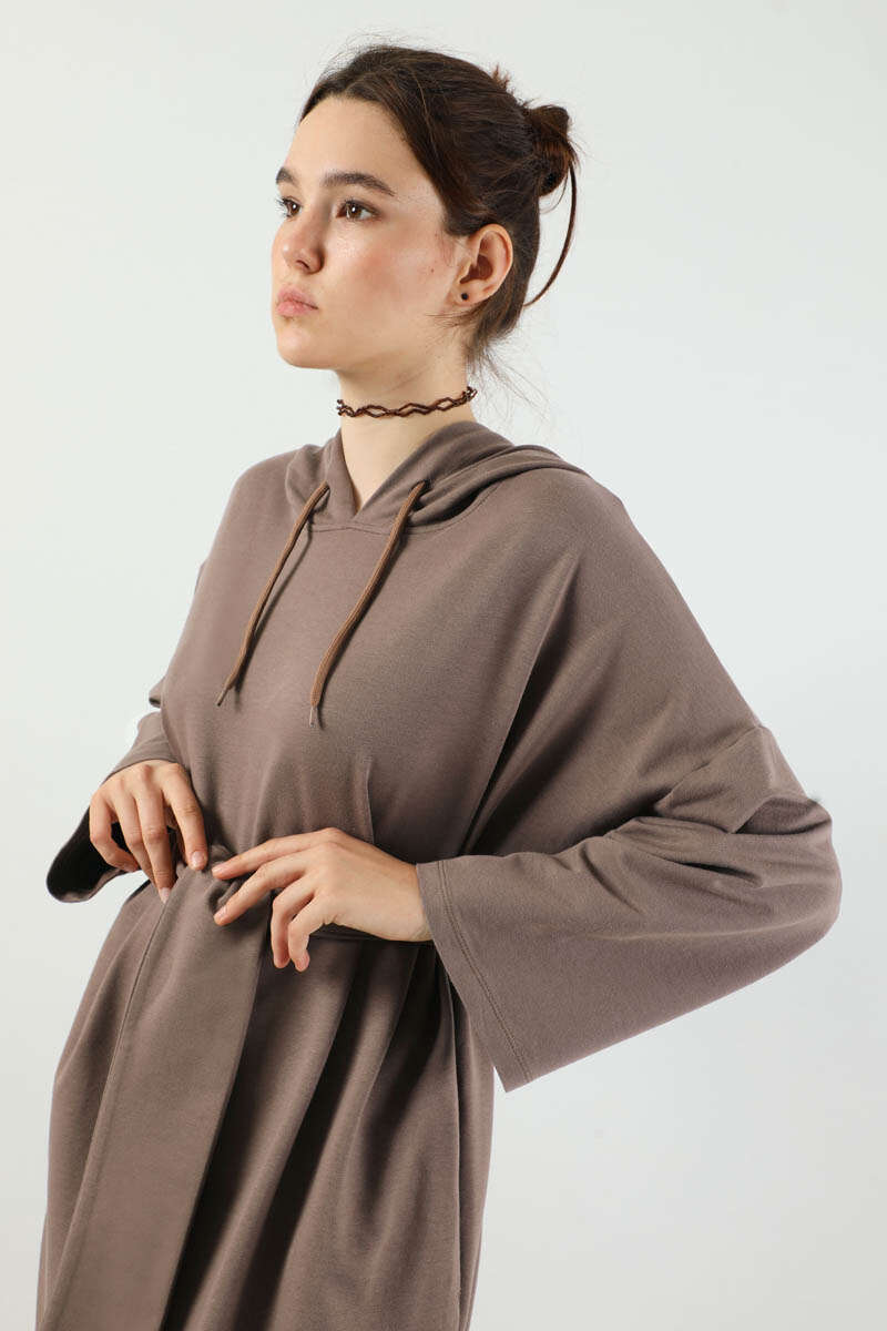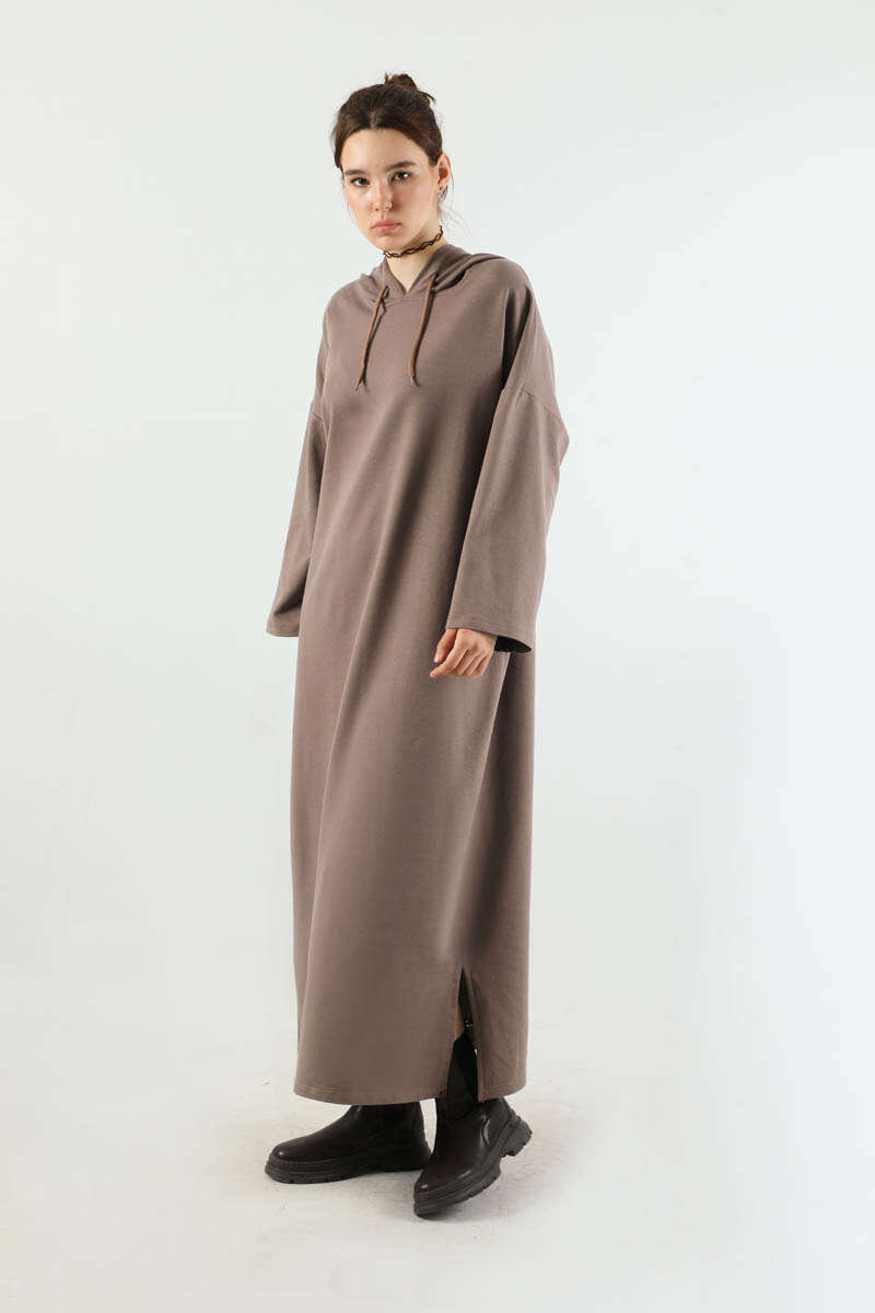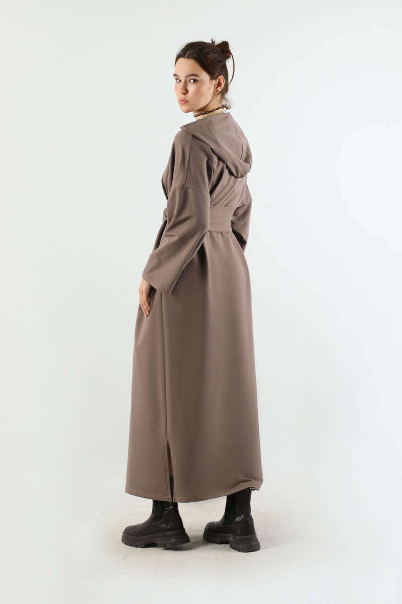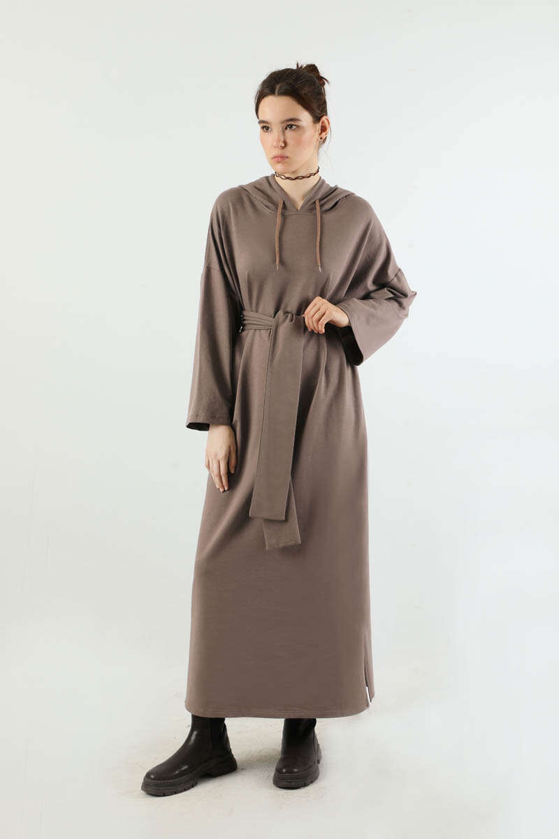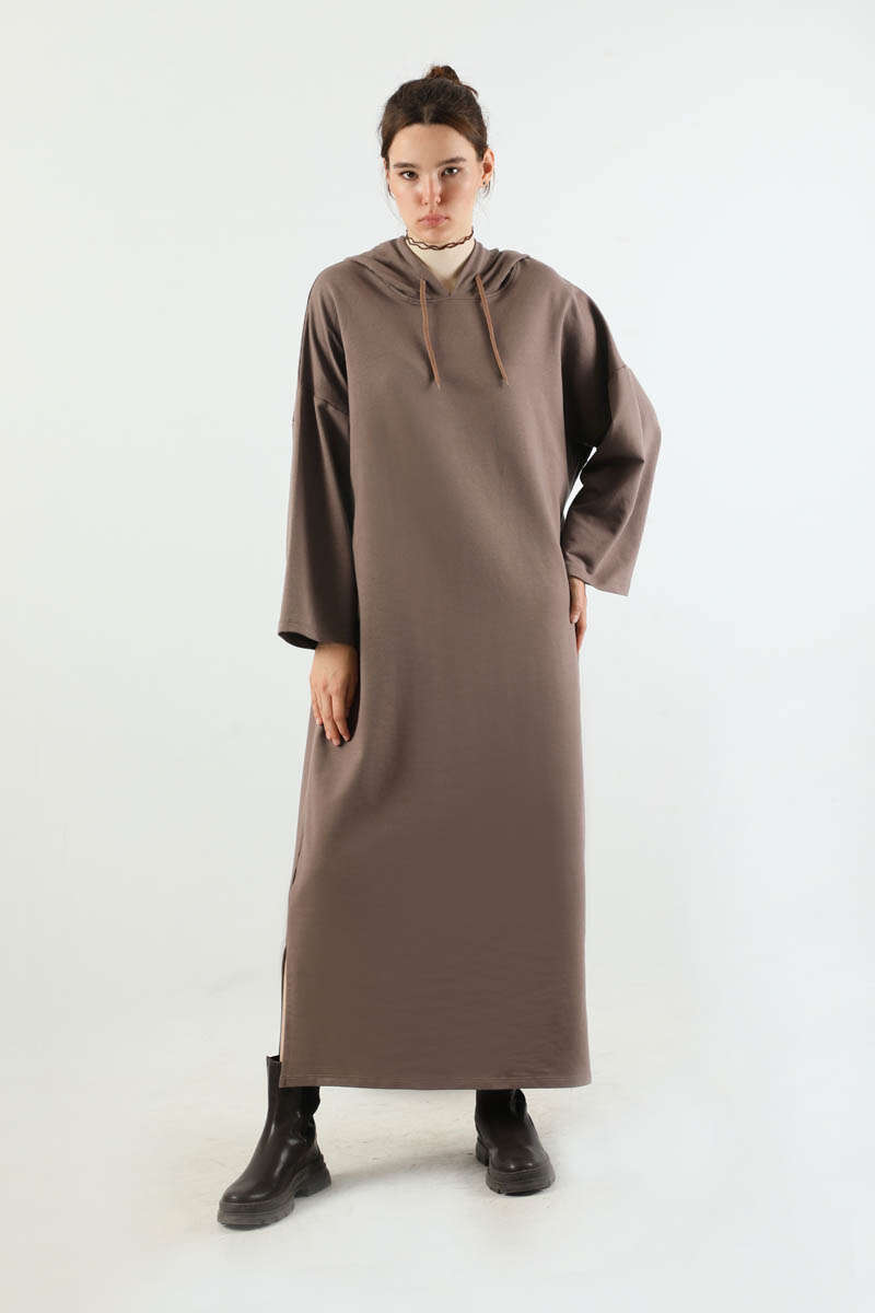 Yırtmaçlı Kapüşonlu Elbise Kahverengi. Düşük omuzludur. Kapüşonludur. Önden bağcık detaylıdır. Etek yırtmaçlıdır. Geniş kuşaklıdır. Günlük kullanım ve özel günlerinizde tercih edebilirsiniz.