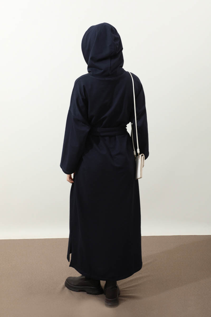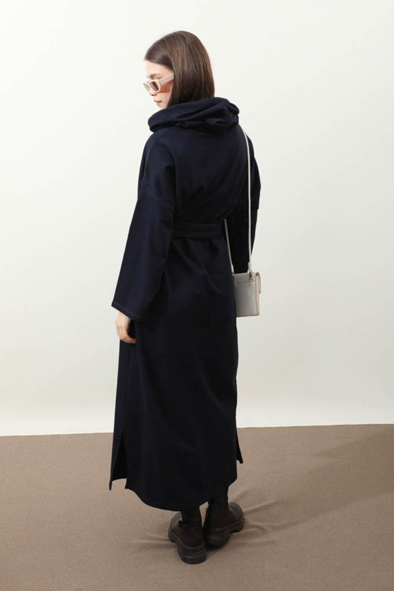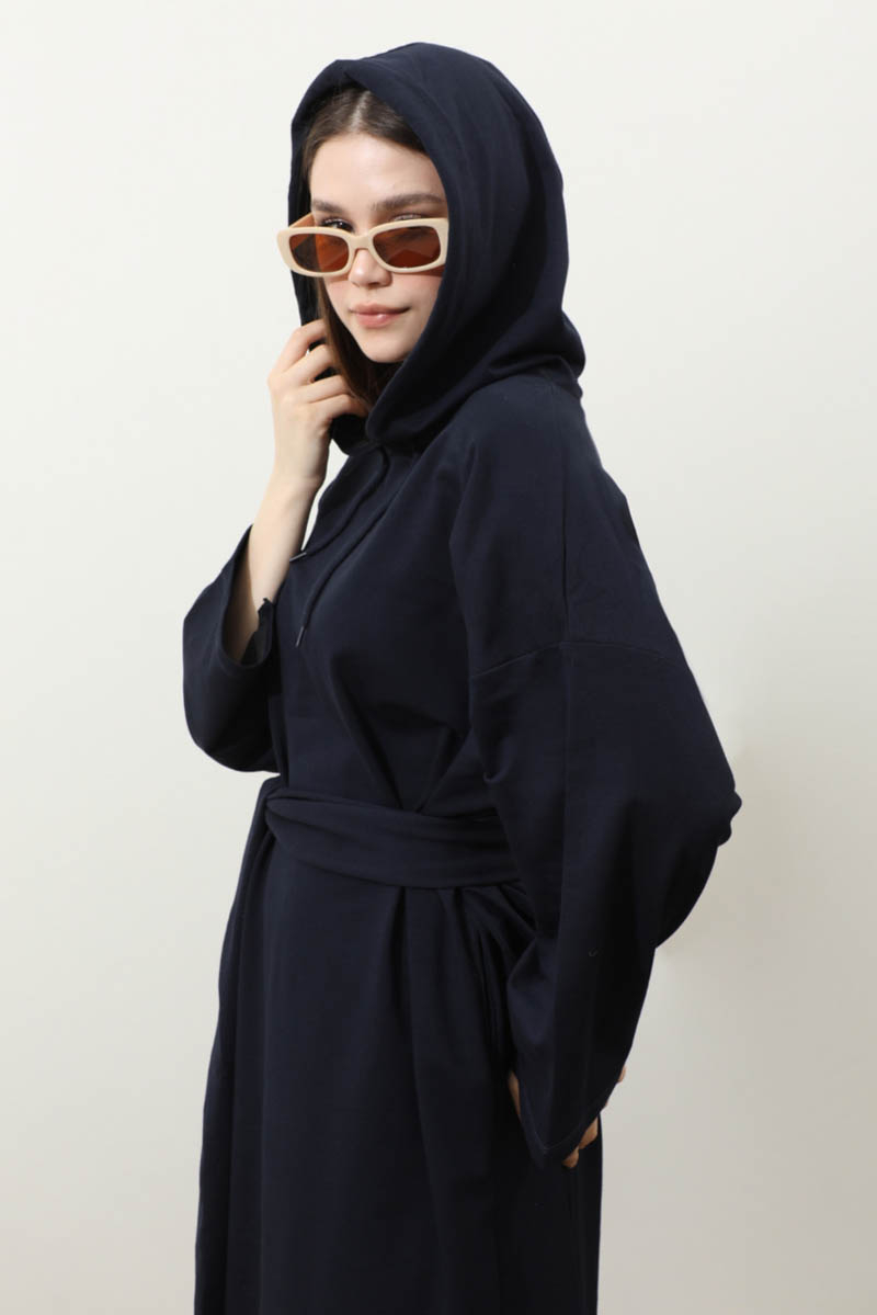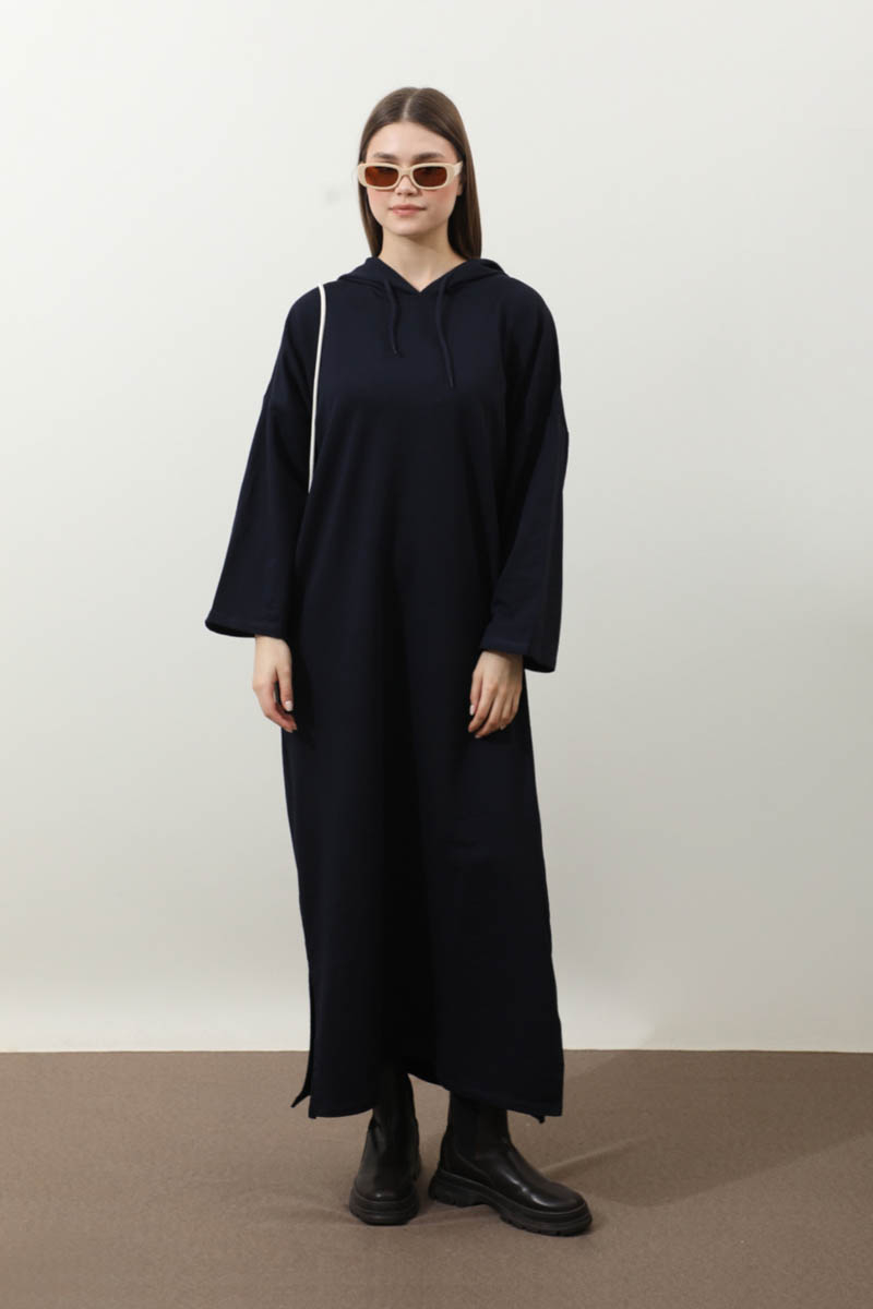 Yırtmaçlı Kapüşonlu Elbise Lacivert