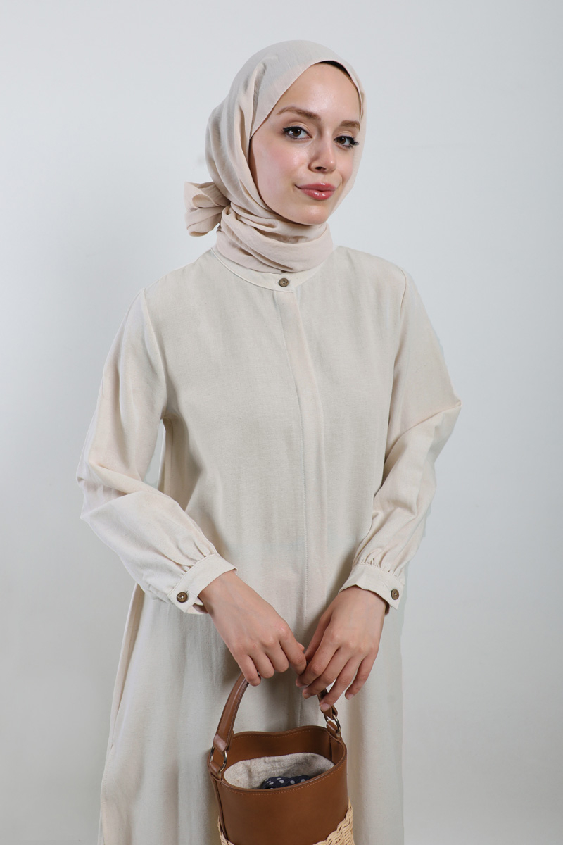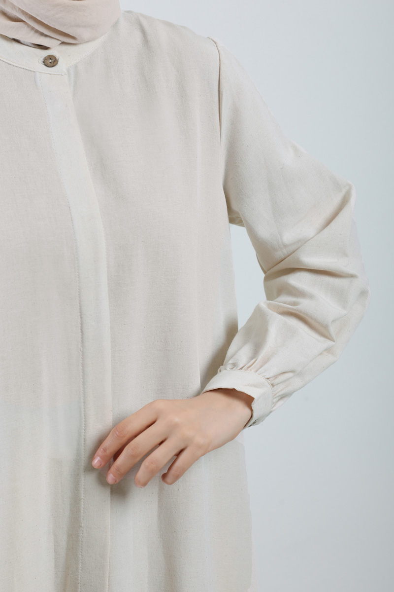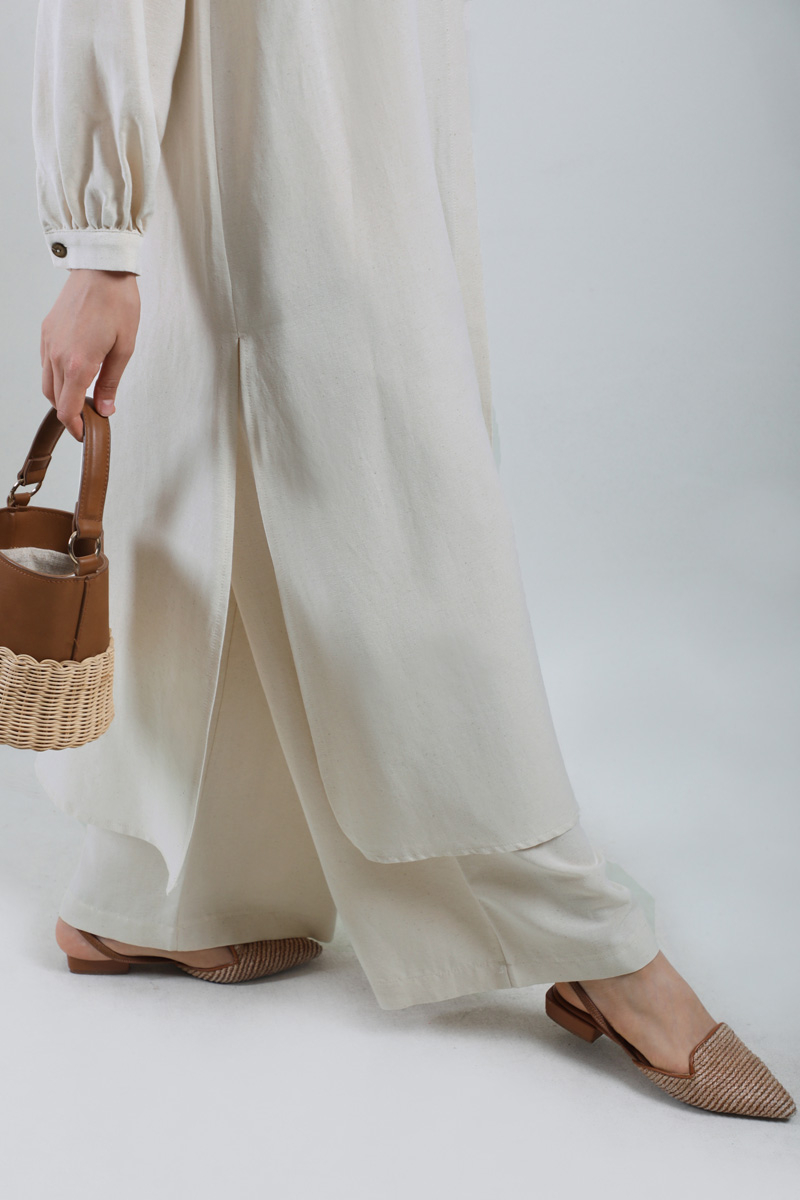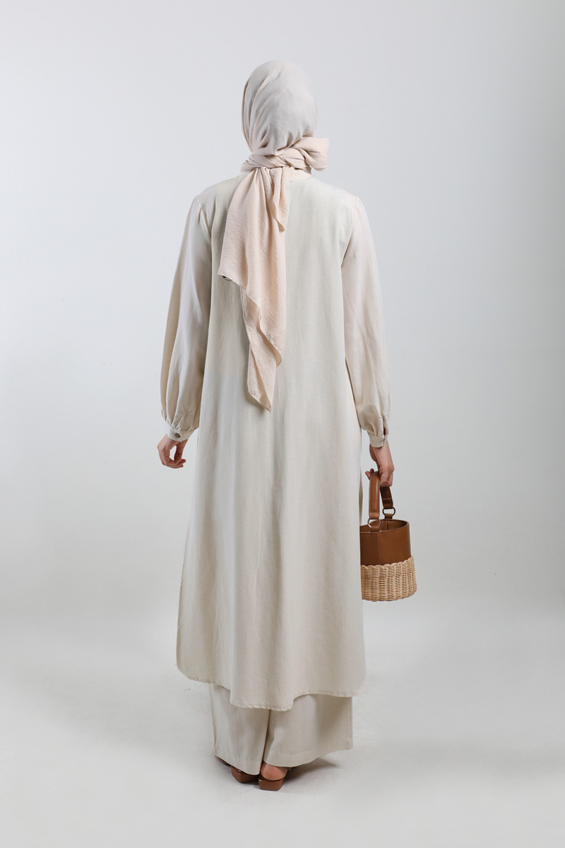 Yırtmaçlı Uzun Gömlek Takım Krem