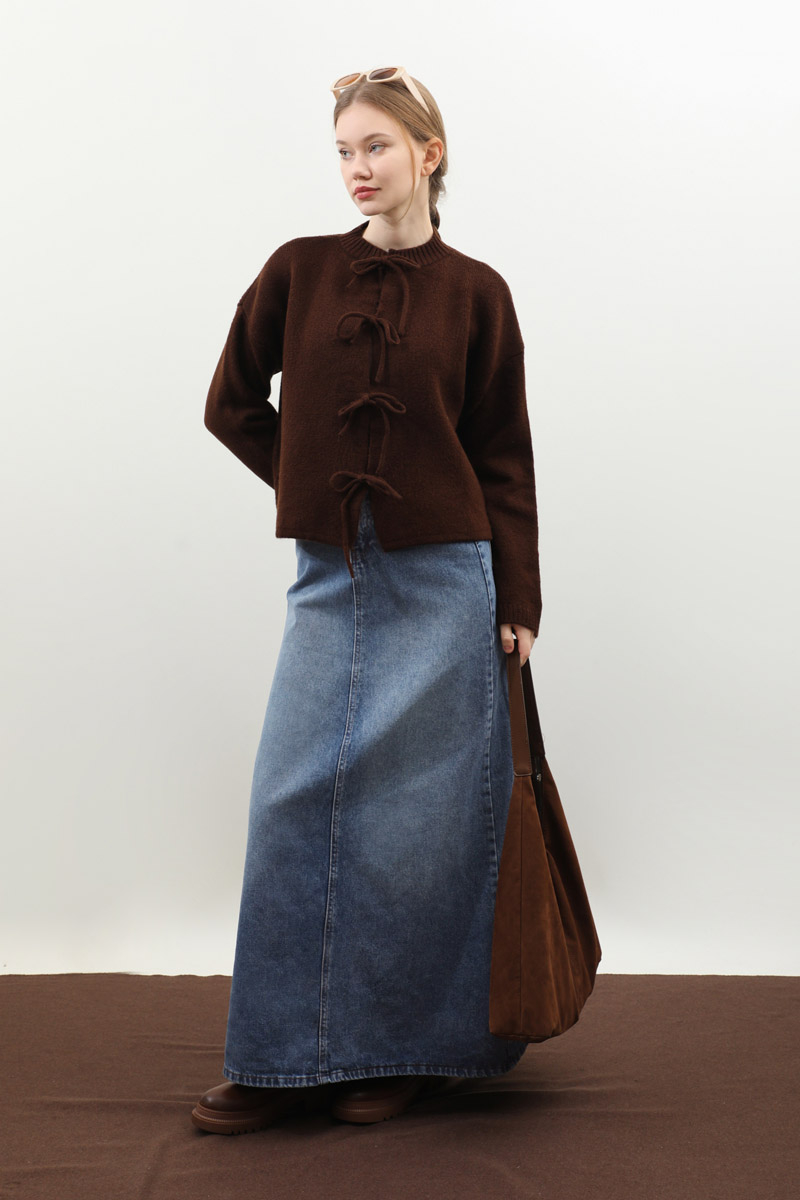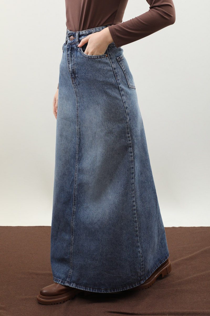 Yüksek Bel Denim Etek Mavi. Yüksek beldir, ön arka dikiş detaylıdır, düğmeli ve fermuarlıdır, ceplidir, astarsızdır. Günlük kullanım ve özel günlerinizde tercih edebilirsiniz.