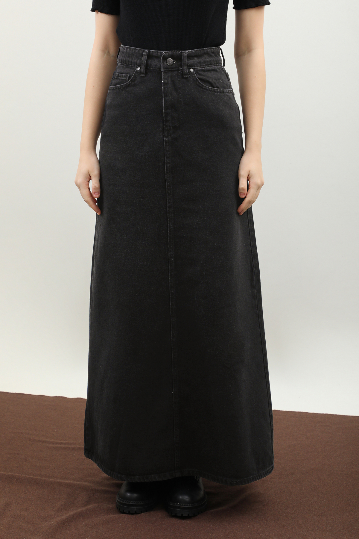 Yüksek Bel Denim Etek Siyah. Yüksek beldir, ön arka dikiş detaylıdır, düğmeli ve fermuarlıdır, ceplidir, astarsızdır. Günlük kullanım ve özel günlerinizde tercih edebilirsiniz.