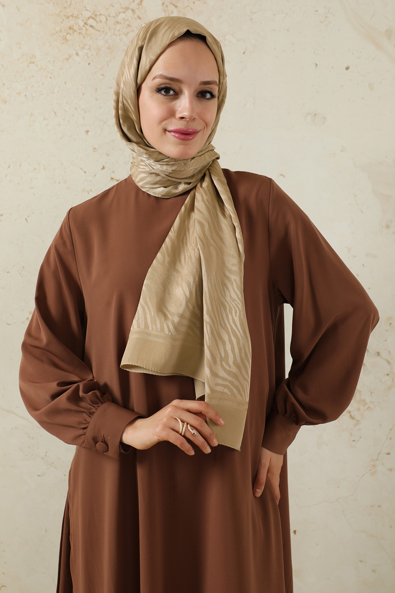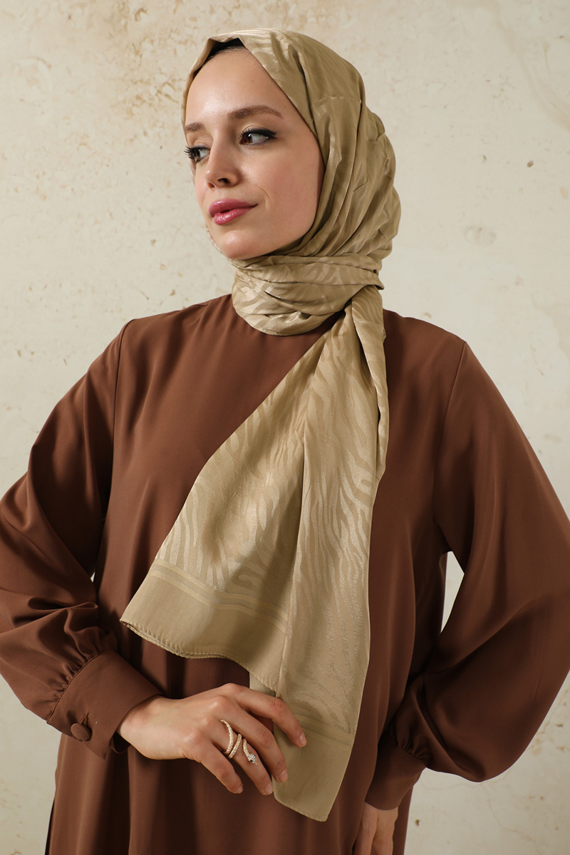 Zebra Jakar Şal Koyu Bej. Pratik oluşu ve kolay şekil alabilir. Tok duruşlu ve dökümlü yapısıyla çok tercih edilmektedir. Ağırlık yapmayan kumaş özelliği ile sık ve uzun süreli kullanıma uygundur. Dört mevsim kullanıma uygundur.