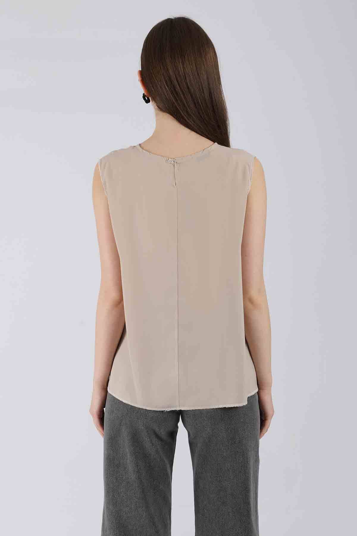 Zero sleeve short underwear/lining is buttoned at the back. It is easy to use with its zero collar detail. Its fabric is medina silk and you can use it in four seasons.