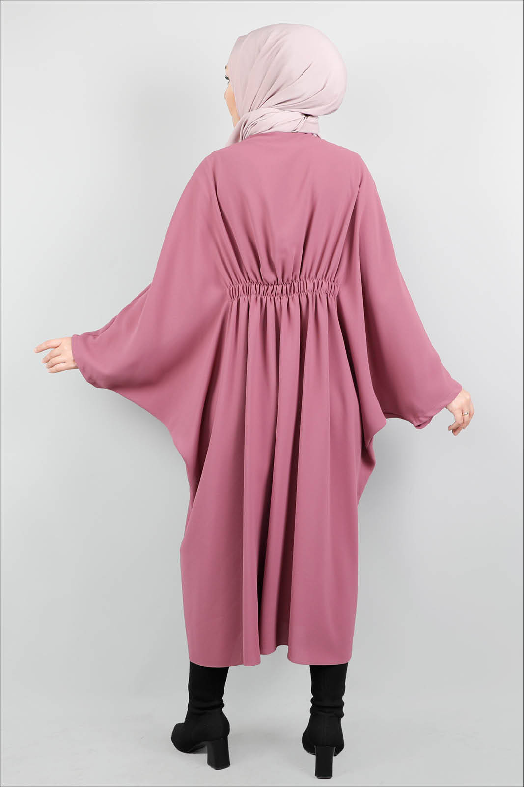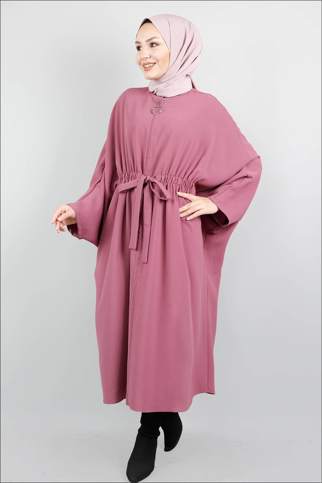 The bat is the arm. It has a front zipper. Can be tied with waist belt.